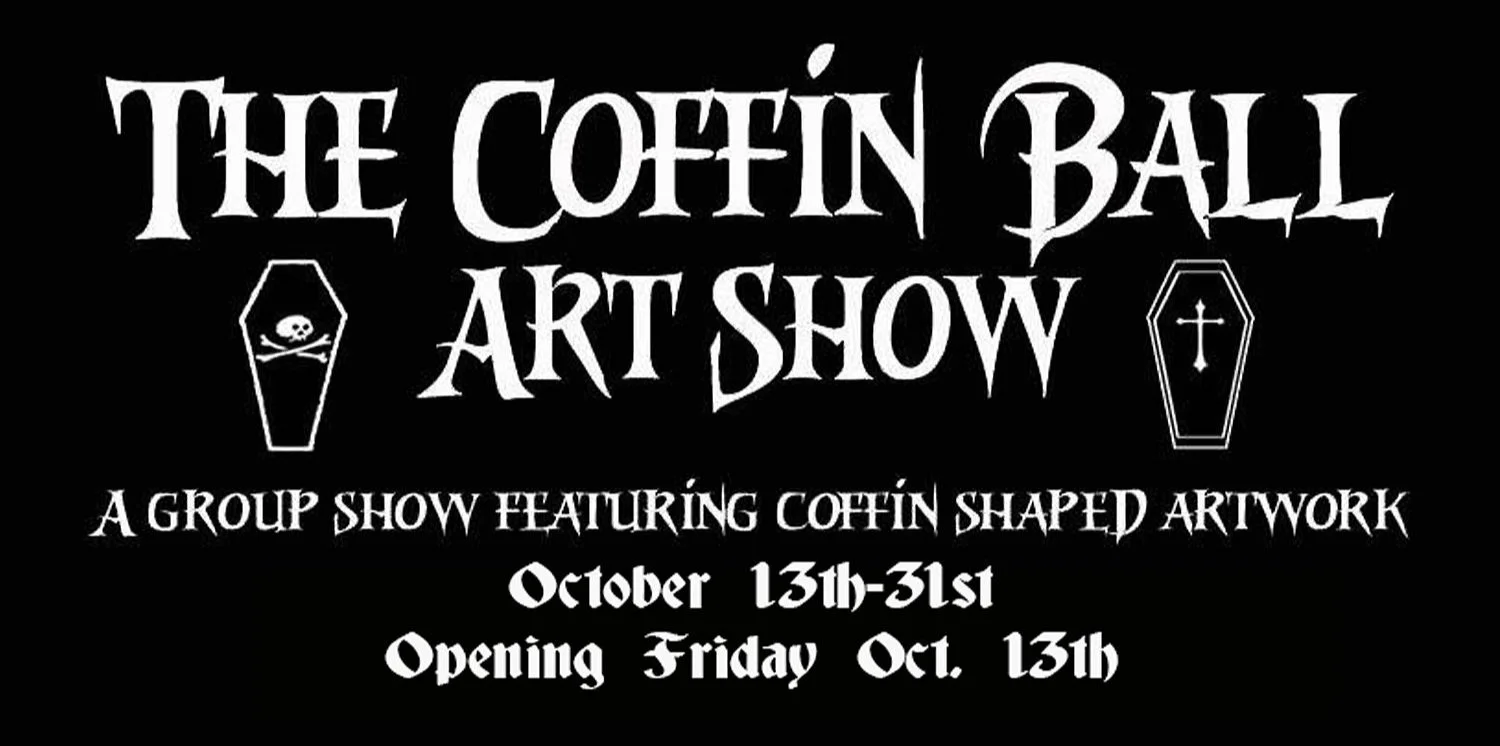 Join us for our annual spooky season group art show from October 10 through 31, featuring coffin shaped artwork created by regional artists.