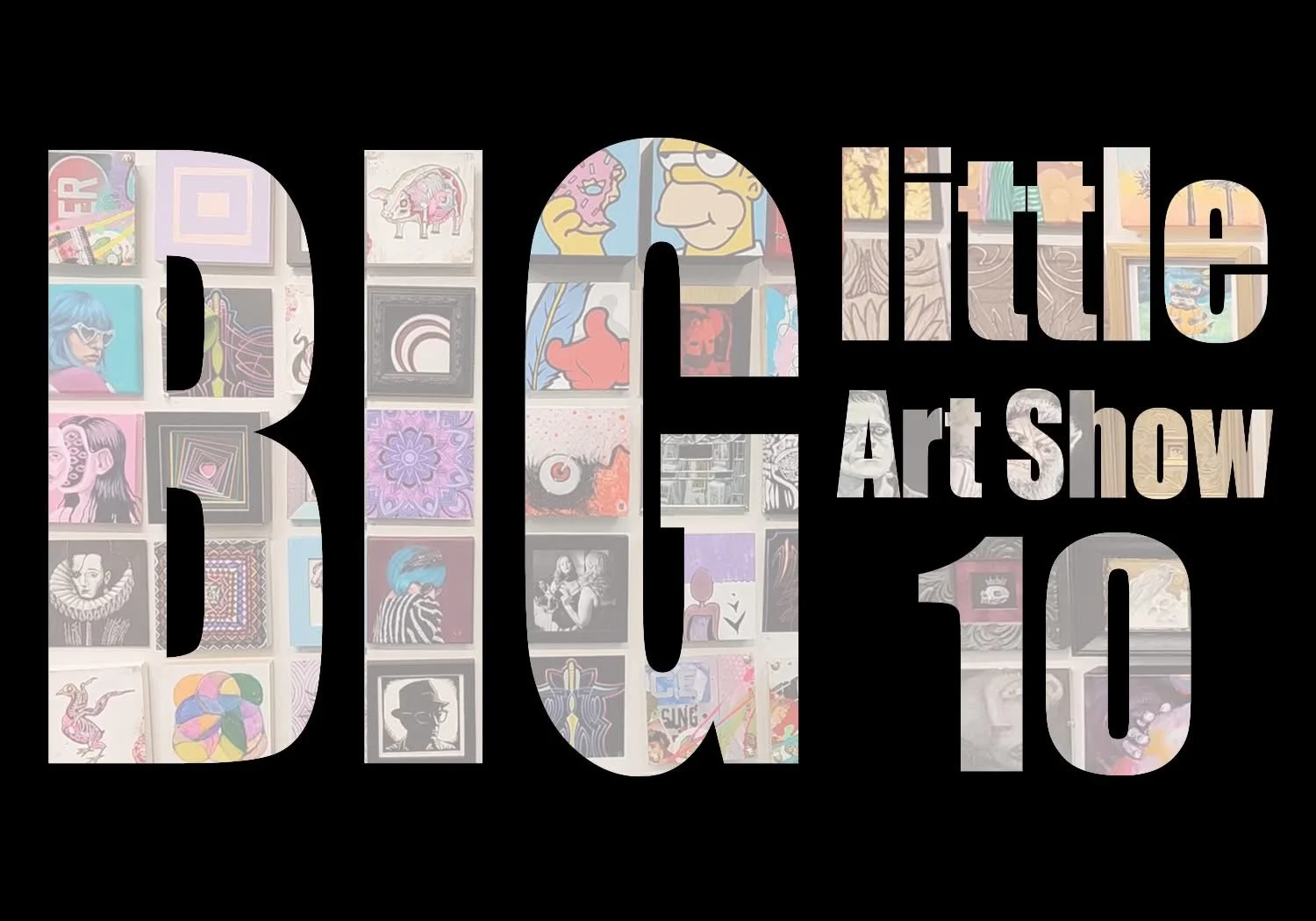 It’s our tenth annual Big Little Art show featuring hundred of little pieces of original art created by over 60 artists, all just 6 x 6 inches!